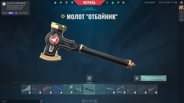 На аккаунте присутствуют [ 19 скинов ]
