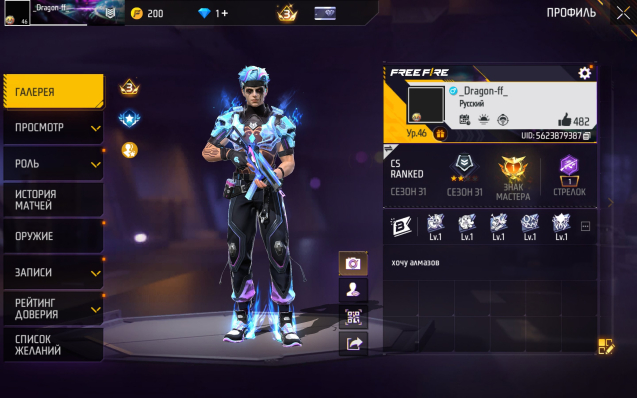 Подробное описание: На аккаунт задоначено 4000💎 есть кулак зимний из 2023 года также костюм северный мишка белого цвета акула за магический куб костюм набор проект небес из Booyah pass также костюм Межзвёздный наблюдатель тоже из Booyah pass 27 волос 16 Масок 5 гримов один из них это красные глаза 65 торсов 48 штанов и обуви 31 много лутбоксов парашютов рюкзаков и досок также много скинов для транспорта 1 мастер в бо и 1 в кб