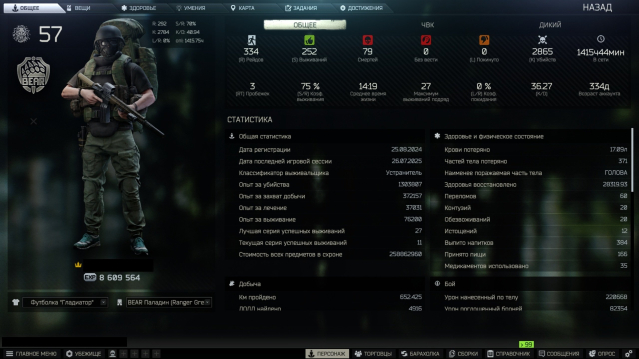 В PVE в схроне 68кк рублей наличкой (258862960 стоимость схрона), 75к долларов. Основные торговцы прокачаны на корону. Отношение со скупщиком 5.98. В PVP наиграно не много в этом вайпе, но какая-то часть квестов уже пройдена
