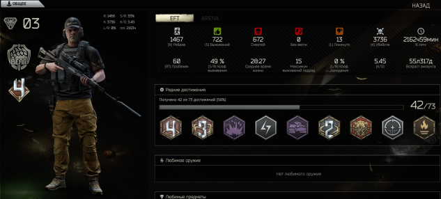 7. EFT Arena с пройденным на 100% бп 0, куплены почти все награды. Бп 1 не начинался.