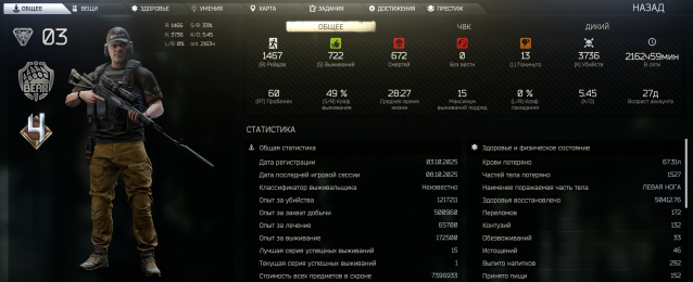 Краткое описание: Продаю личный аккаунт (TUE+EOD+ARENA+PVE) Escape from Tarkov RU. 4 ПРЕСТИЖ. (Полная перепривязка)