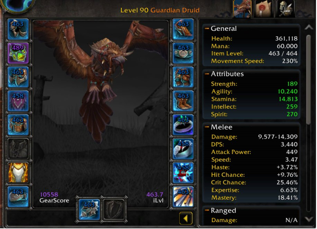 Краткое описание: 10558 GS/464 ILVL 90лвл гуард/ферал друид 310 флай