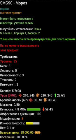 Сервер: RU-6Краткое описание: Продам SMG90 Урон +23,6%.(210-346) Точность-59,4%. Износ 0% в краске МОРОЗ ( все Сервера )