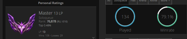 Краткое описание: мастер 79%wr лега на йи, много лута 30к blue essens