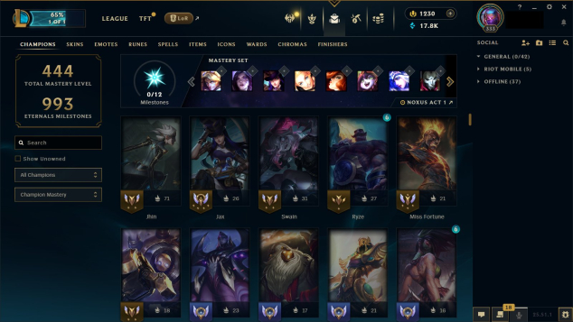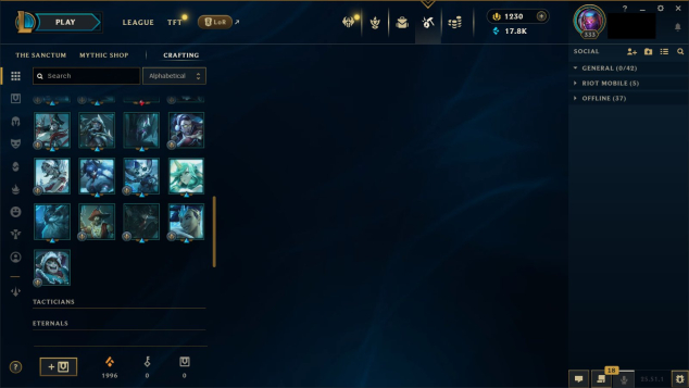 🪙1230 RP, 17.8K Blue Essence, 35 Mythic Essence, 1996 Orange Essence