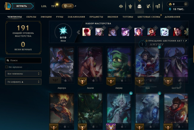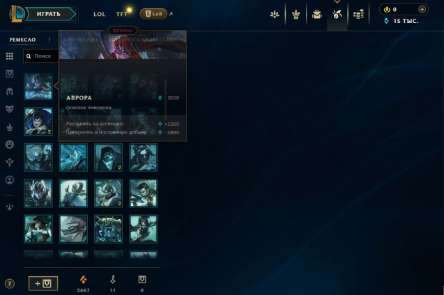ʚ💰➤На аккаунте присутствует 22 купленных, 33 в добыче, 50 купленных чемпионов и ~40 в добыче, 3087 оранжевой эссенции, 15000 синей.