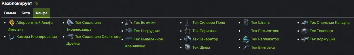 — Энграммы, которая упростят вашу жизнь, такие как: Тек Седло для Скального Дрейка, Тек Рельсотрон, Тек Спальная Капсула.