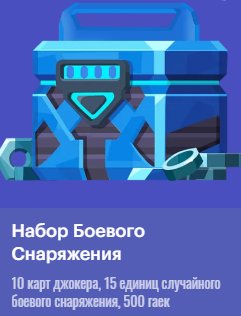 — «Боевого снаряжения» ( 10 карт джокера, 15 единиц случайного боевого снаряжения, 500 гаек )