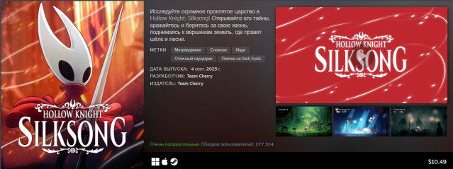 Регион: СНГКраткое описание: 🎶 ПОДАРЮ ИГРУ В STEAM 🎁 💚 HOLLOW KNIGHT: SILKSONG 💚 | ⚡ Быстрая отправка