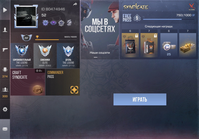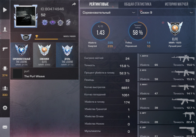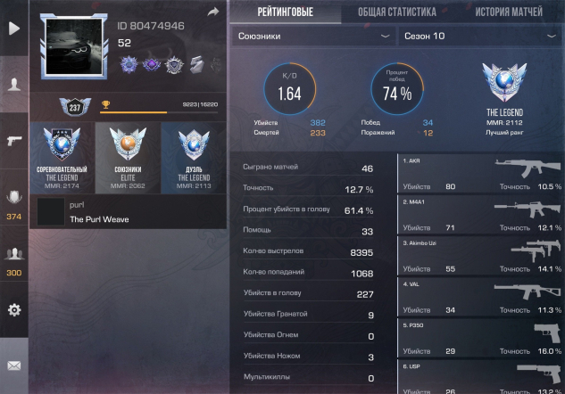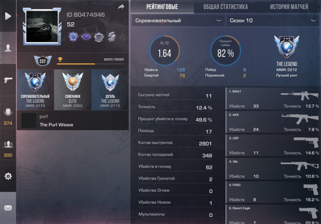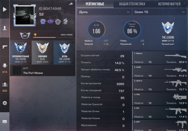 · Старый аккаунт (ID: 80474946) с крутой коллекцией из 16 медалей и Легендой в старом сезоне, а так же 3 легенды в 10 сезоне!