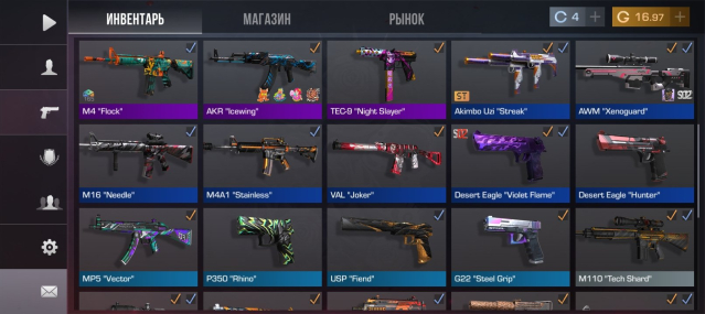 скины еще есть, эпики, общая стоимость инвентаря 1800-1900g, есть клан