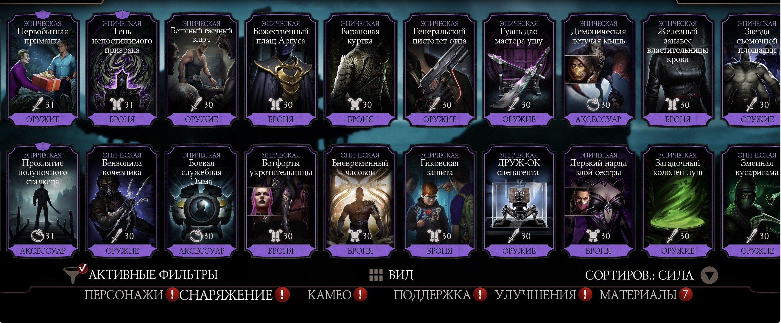 Все фиолетовые снаряжение со всех башен