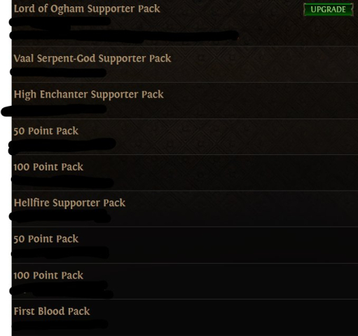 It comes with the following supporter packs: Vaal Serpent God, Hellfire Supporter, High Enchanter, Lord of Ogham.