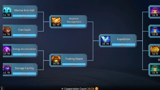 Открыто 50 клановых локаций, клановый запас составляет 10 единиц.