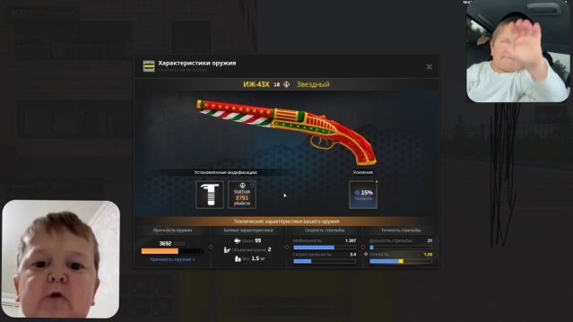 Подробное описание: 18 ИЖ, 2 точность, скин Звездный, стартрек- для покупки вам надо иметь минку 55kk, вы покупаете ИЖ, а после я возвращаю вам потраченые деньги через Авто/Бумаги/Оружие