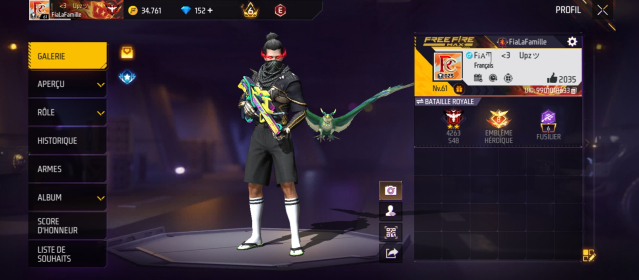 — Plateforme: Free Fire | Serveur: MENA | Niveau: 61