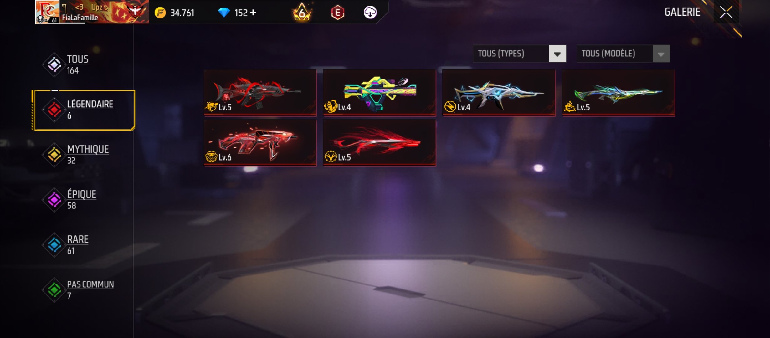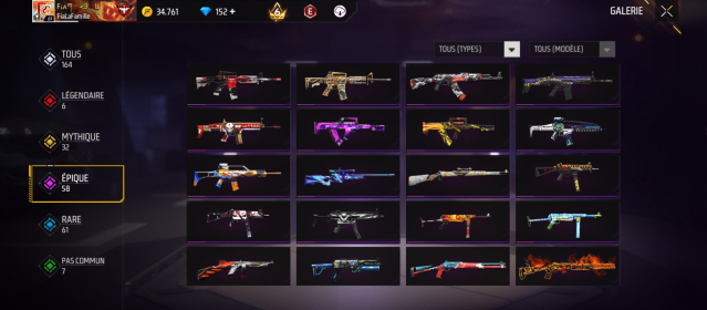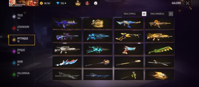 — Rareté des skins: variété légendaire/Mythique/Epique + skins promo