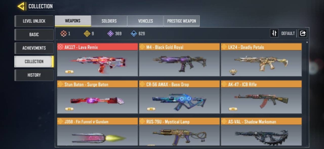 🔫 Skins Gun: 1 Mythic — 9 Legendary — 369 Epic — 629 Rare🔫