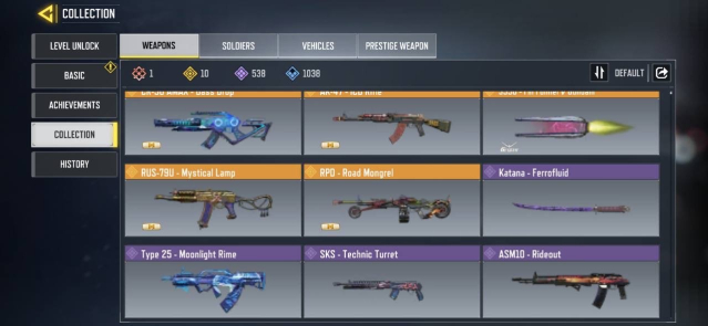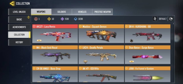 🔫 Skins Gun: 1 Mythic — 10 Legendary — 538 Epic — 1038 Rare🔫