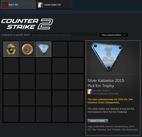 Подробное описание: • Silver Katowice 2015 Pick'Em Trophy