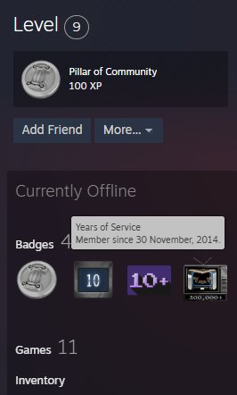 • Steam account level 5