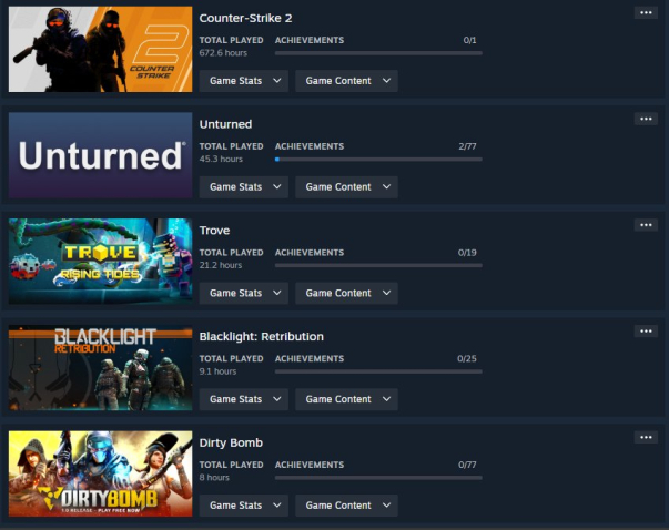 • CS2 Prime: 673 real hours