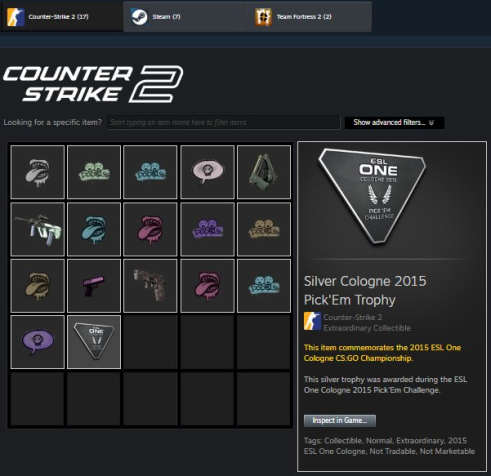 Подробное описание: ✔️ Silver Cologne 2015 Pick'Em Trophy