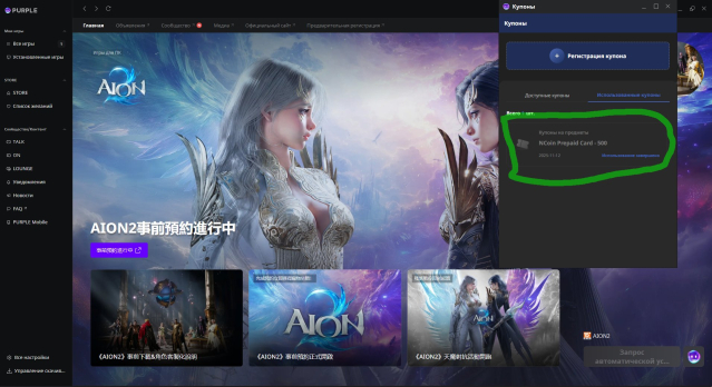 После оплаты вы получите купон на 500 NCoin в приложение Purple.