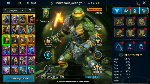 Легендарные герои за вход: 12 (+Микеланджело +Ниндзя)