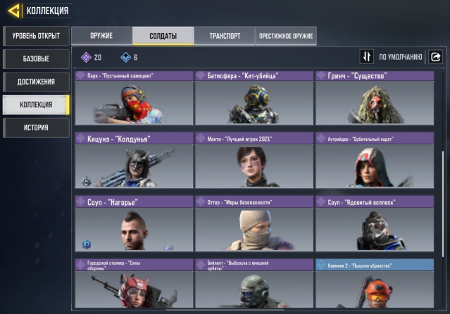 🎯 — СОЛДАТЫ: 20 ЭПИК, 6 РЕДКИЙ