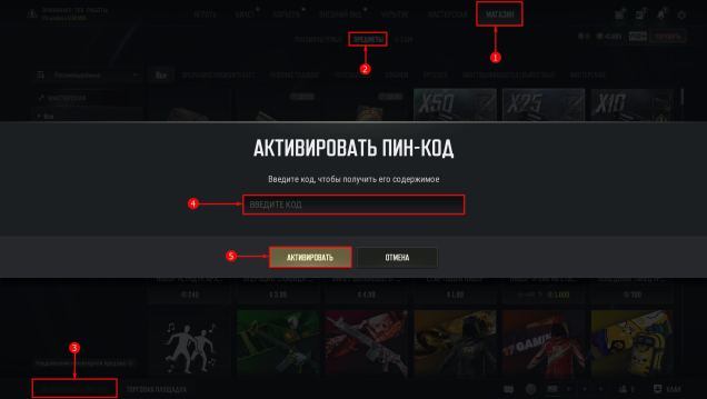 В главном меню перейдите в раздел «Магазин», затем в подраздел «Предметы».