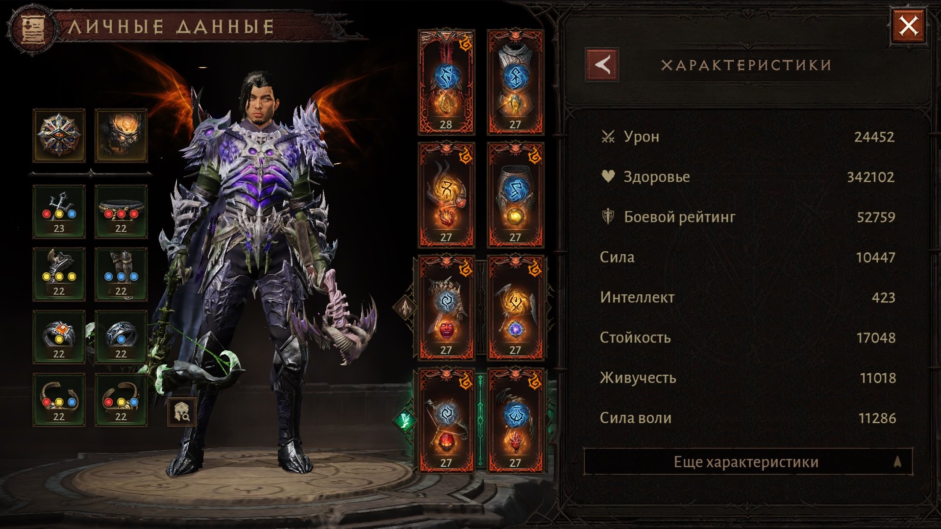 (Пройдена: основная компания, 3 этап пути героя, кровавый путь закрыт на 100%, получен плащ бессмертного за 20 ранг теневого клана, персонаж находиться на сложности П9, собрано 3320 очков свершения, МАКСИМАЛЬНЫЙ парагон сервера, закрыто ИСПЫТАНИЕ реликвария П7-П8 получена уникальная внешка и оружие) 🛑https://imgur.com/a/jcsHX1C
