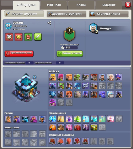 Уровень Ратуши: 13Краткое описание: ☑️Быстрая ВЫДАЧА☑️95% ФУЛЛ🟡13 ТХ🟡ГЕРОИ 56/57/43/36/24🟡5 СТРОИТЕЛЕЙ🟡1000 ГЕМОВ🟡1250 ЛВК🟡3 СНАРЯЖЕНИЯ🟡
