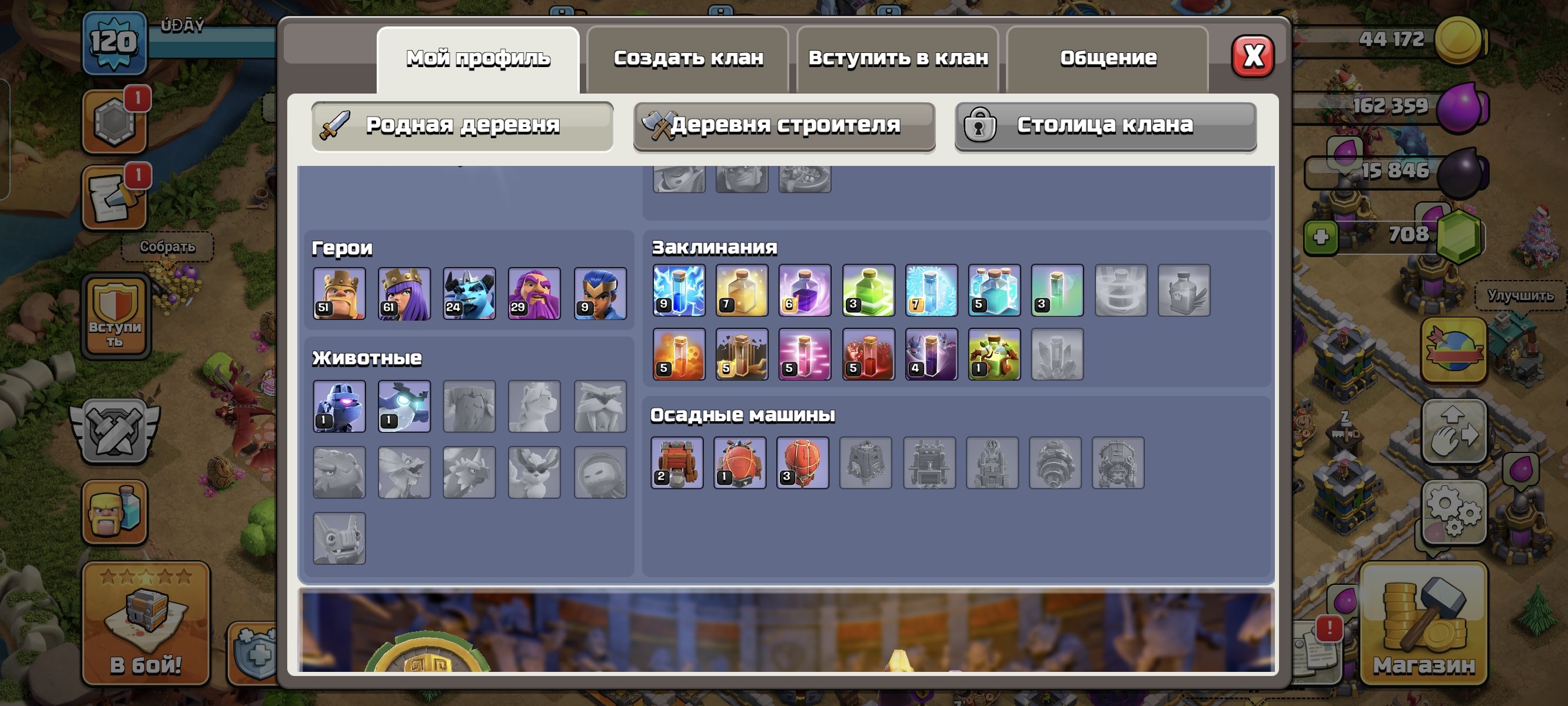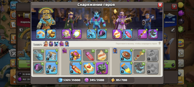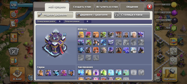 Уровень Ратуши: 15Краткое описание: { Быстрая ВЫДАЧА } 🟣🔴120 LVL🔴🟣15 TX🟣🔴ГЕРОИ: 51/61/24/29/9🟣🔴5 СТРОИТЕЛЕЙ🟣🔴FIRSTMAIL ПОЧТА🔴🟣