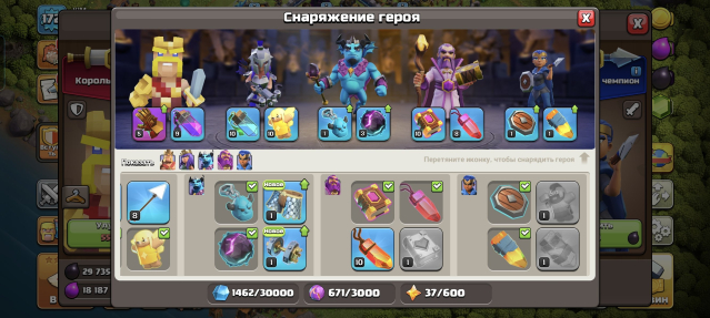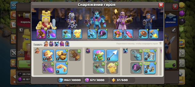 Уровень Ратуши: 14Краткое описание: { Быстрая ВЫДАЧА } 🟣🔴172 LVL🔴🟣14 TX🟣🔴ГЕРОИ: 62/62/38/40/1🟣🔴5 СТРОИТЕЛЕЙ🟣🔴FIRSTMAIL ПОЧТА🔴🟣
