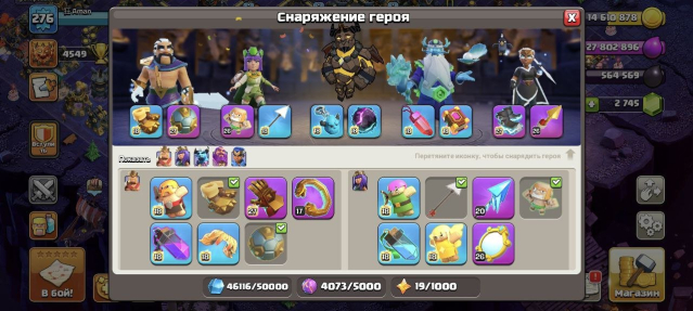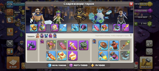 Уровень Ратуши: 17Краткое описание: ⚡️17𝐓𝐇 FULL 100%【276𝐋𝐕𝐋】⚡️💎12 ЭПИК СНАРЯГ💎🔵【ГЕРОИ 100/100/75/50】🔵 💙8 ОФОРМ💙🍀ПЕРЕПРИВЯЗКА🍀