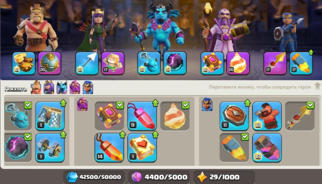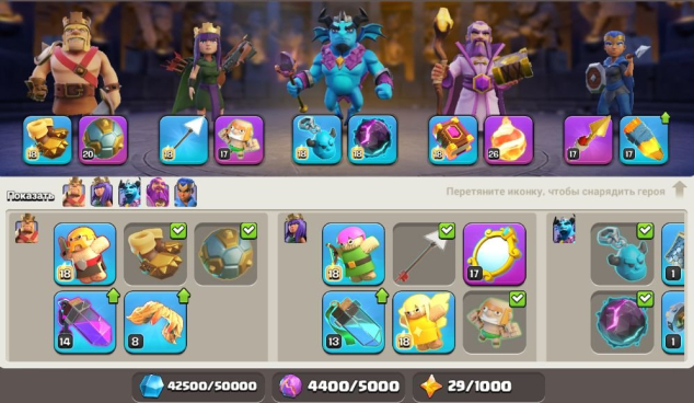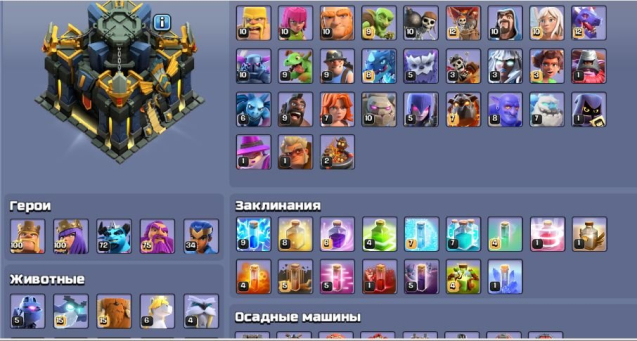 Уровень Ратуши: 17Краткое описание: 🟦💥💥【 TH 17 】⚡️242 LVL ⚡️💠 256Гемов 💠【ГЕРОИ -100/100/72/75/34 】⚡️🟦💥💥