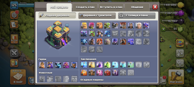 Уровень Ратуши: 14Краткое описание: { Быстрая ВЫДАЧА } 🟣🔴125 LVL🔴🟣14 TX🟣🔴ГЕРОИ: 45/46/20/18/3🟣🔴5 СТРОИТЕЛЕЙ🟣🔴FIRSTMAIL ПОЧТА🔴🟣