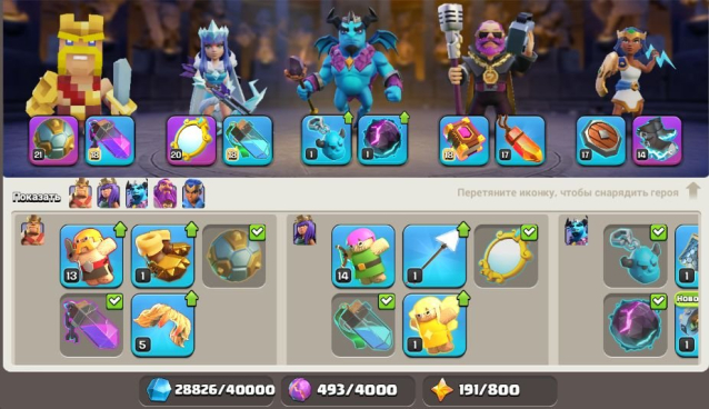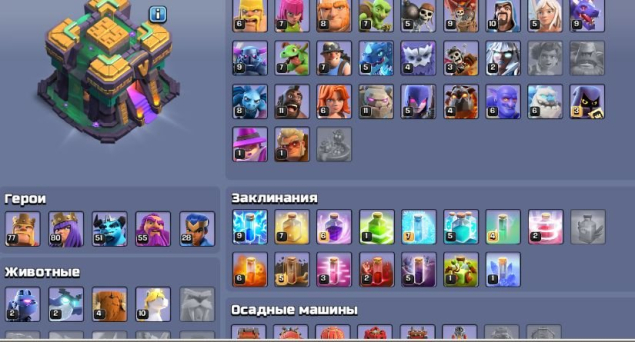 Уровень Ратуши: 14Краткое описание: 💎196LVL💎14ТХ💎ГЕРОИ 77/80/51/55/28💎889 ГЕМОВ 💎СКРИНЫ💎