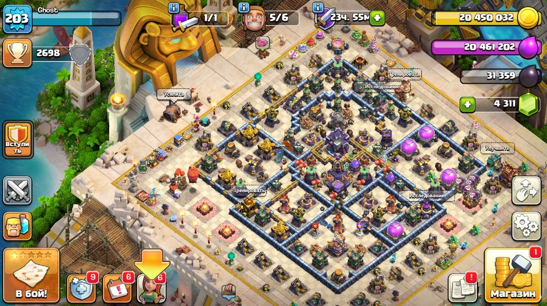 Уровень Ратуши: 15Краткое описание: 💎203LVL💎15ТХ💎ГЕРОИ 81/84/60/56/31💎4311 ГЕМОВ 💎СКРИНЫ💎