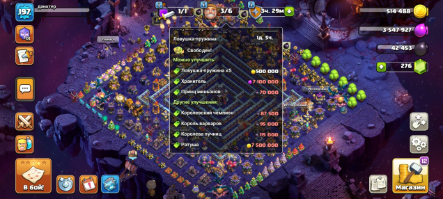 Уровень Ратуши: 15Краткое описание: 🔥🔥🔥【✅️ПЕРЕПРИВЯЗКА✅️】【РАТУША 15 ФУЛЛ (ДЕКОР)】【ГЕРОИ-81/85/58/57/36】 【197 LVL】【13 СКИН + ОФОРМ】🔥🔥🔥