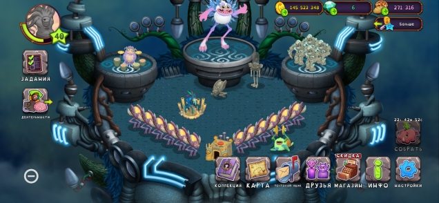 Краткое описание: аккаунт в my singing monstersПодробное описание: на аккаунте есть много всего, на фото не все что есть на аккаунте. на многих островах так же есть коробасы, как редкие и эпические.