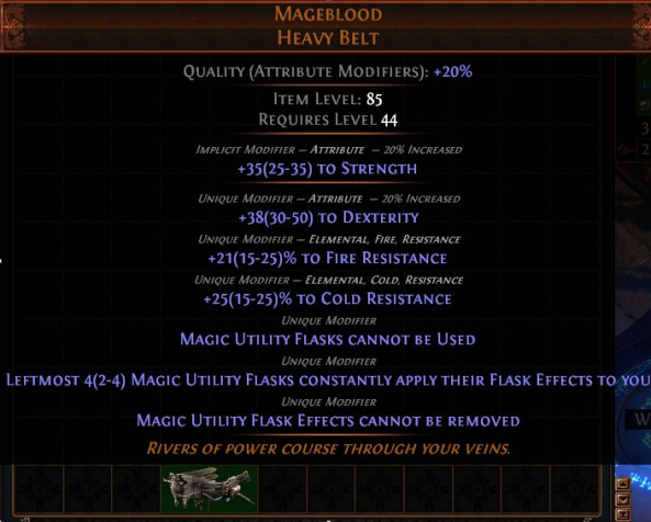 Краткое описание: Пояс Волшебная кровь(Mageblood) на 4 фласки, не оскверненный.