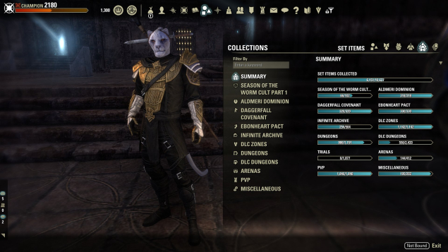 1-й перс: PVE — MagNB — SoloDD (AlcastHQ build) — знает все Crafting Motifs (кроме двух последних), доступные за золото + 92% мебельных планов + 99% всех кулинарных рецептов — 418 Skill Points