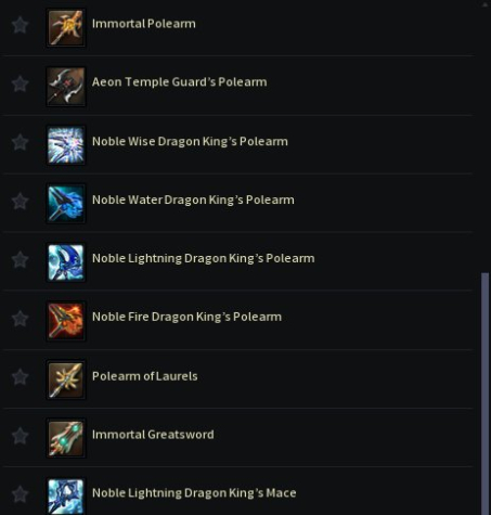 • Many wardrobe skins:4× Noble Dragon Polearm Skins (Lightning / Wise / Water / Fire),Noble Lightning Dragon Mace