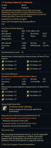• Several operational rerolls(2 sorcerer/2 templars/1 sin/1 ranger/1 chanter/1cleric) including a Sorcerer with +10% PVE attack vs bosses