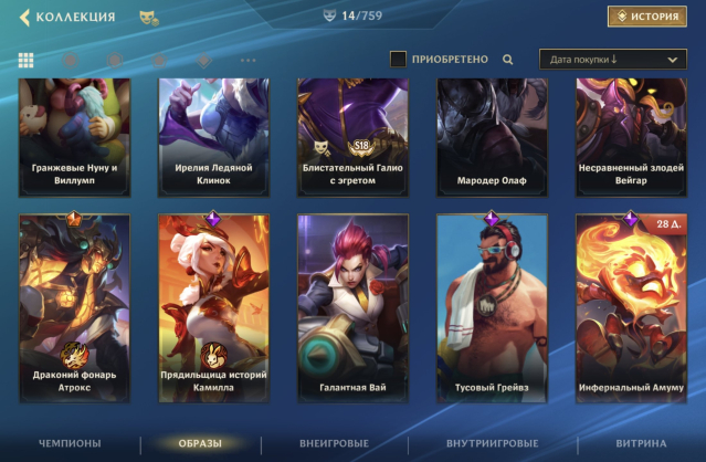 Краткое описание: Алмаз 4 14 скинов 30 чемпионов