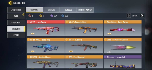 🔫 Skins Gun: 1 Mythic — 7 Legendary — 304 Epic — 298 Rare🔫