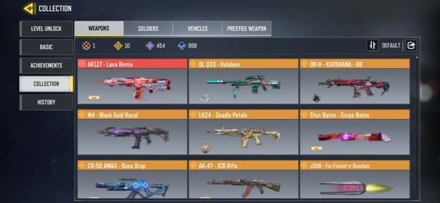 🔫 Skins Gun: 1 Mythic — 10 Legendary — 454 Epic — 968 Rare🔫