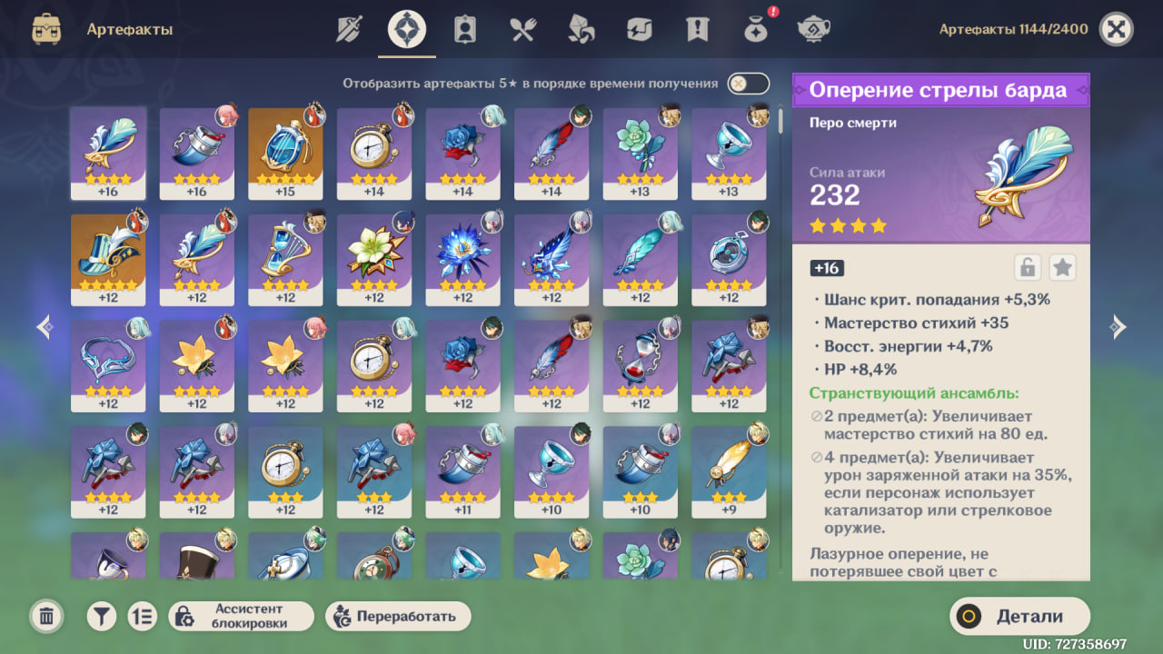 🌟 Состав персонажей и оружия: